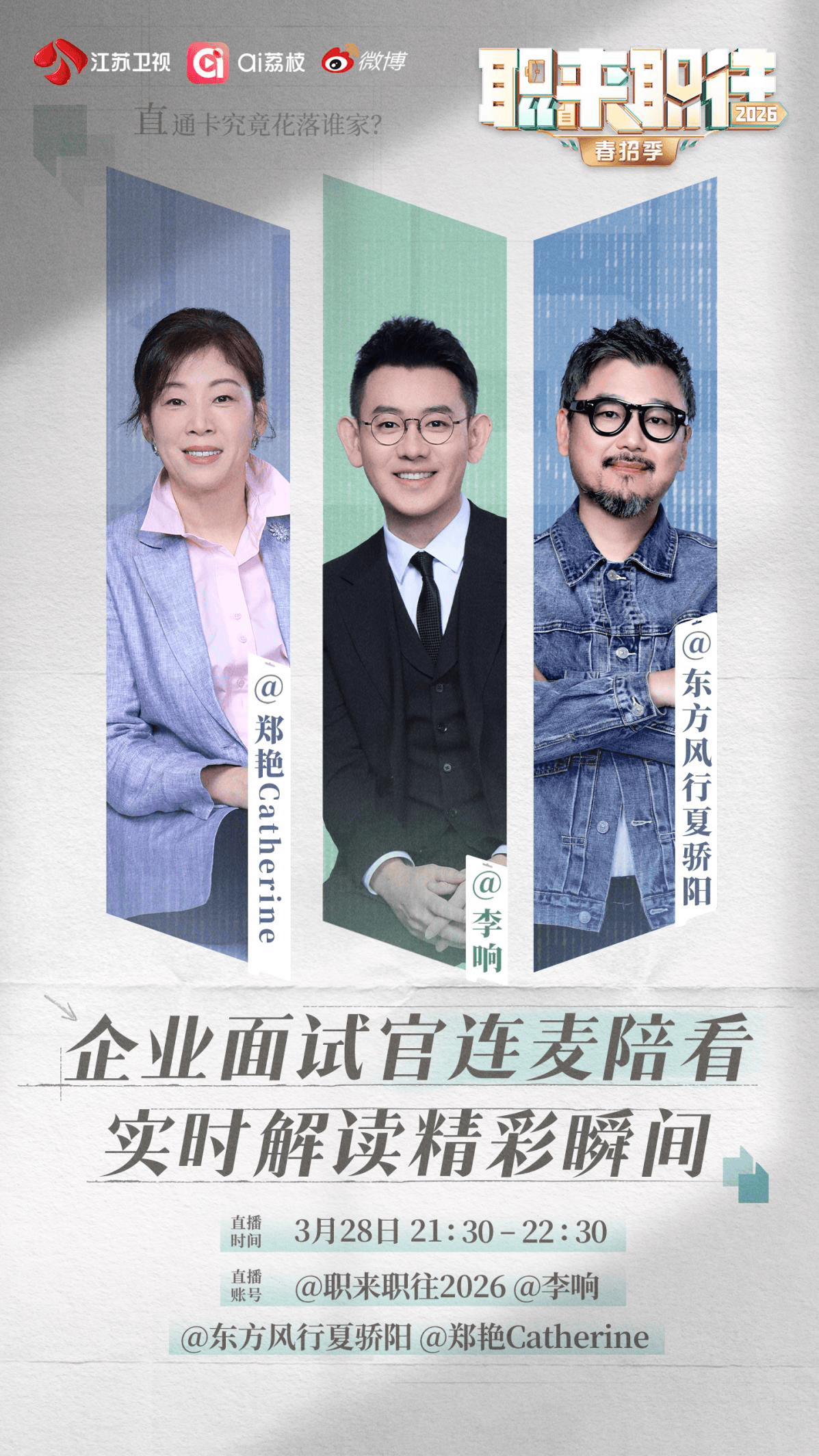 从专科导游到清华学霸,这期节目用三个求职者,拆解了职场最核心的命题:能力、学历、共情力,到底什么才是企业最看重的?每周六晚21:45,江苏卫视、ai荔枝、腾讯视频——答案,在每一场真实的交锋里。